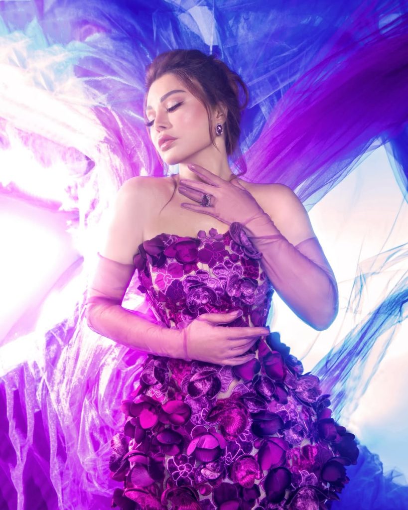 وأكملت هيفاء وهبي حضورها الآسر بقفّازين من الأورغنزا بلون الفستان، ومجوهرات مرصّعة بالألماس وأحجار الجمشت اللافتة، فيما اختارت حذاء أنيقًا بلون متناغم مع الإطلالة.