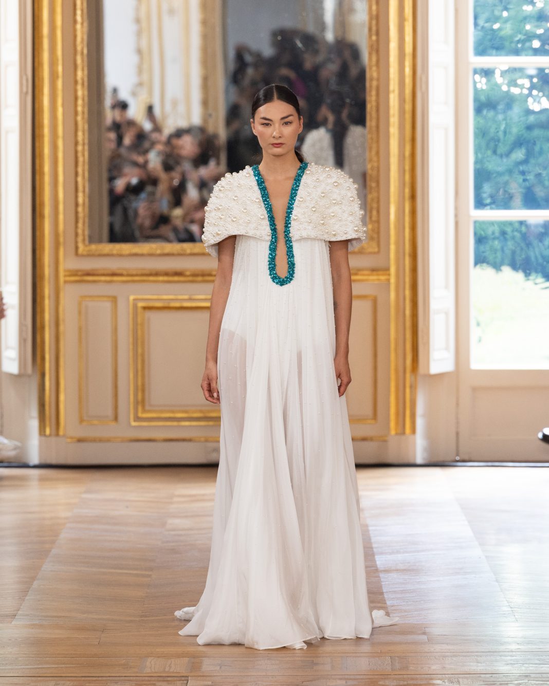 تميزت المجموعة بتفاصيل زخرفية غنية مستوحاة من عصر الباروك، مثل دوامات التطريز، والتطريز ثلاثي الأبعاد، والأشكال النحتية التي تحاكي الدروع، مع لمسات درامية من اللآلئ والشفافية والكورسيهات الحادة.