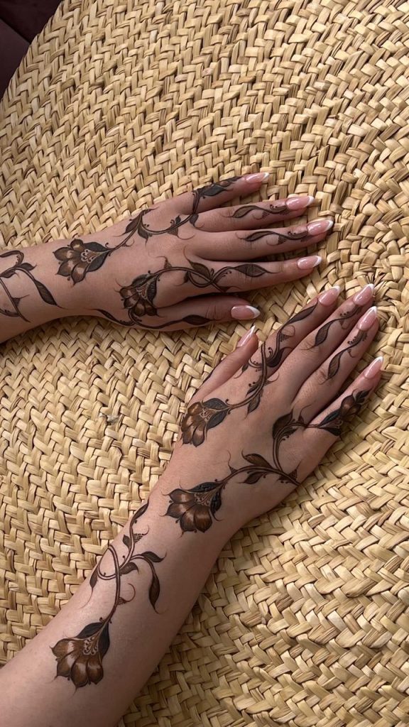 عندما يتعلق الأمر بتفاصيل النقش، توضح آمنة أن الزهور والنباتات هي أكثر ما يبرز جمال اليد، بينما تُستخدم الأشكال الهندسية بشكل خاص في الإطلالات المستوحاة من الطابع الهندي، حيث تمنح اليد مظهرًا فنيًا ودقيقًا.