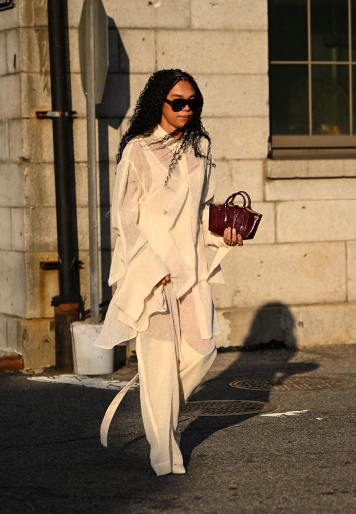 Sheer pants layering makes an appearance outside Jason Wu. Getty Images