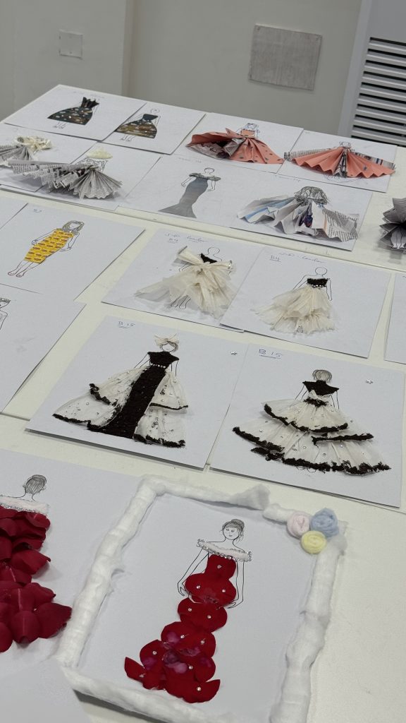 تضمنت الورشة نشاطاً تفاعلياً بعنوان **«فن الورق»**، شاركت فيه نحو **150 إلى 160 امرأة** تم تقسيمهن إلى **19 فريق عمل**، بحيث تقود كل مجموعة إحدى المشاركات. وقد مُنحت الفرق أدوات بسيطة مثل **المناديل الورقية، الألوان، والجرائد**، وطُلب منهن تصميم أزياء مبتكرة باستخدام هذه المواد، في تجربة تجمع بين الإبداع والقيادة.