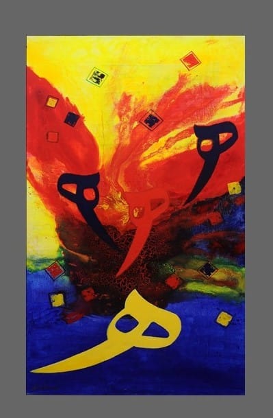 ما يُميز بصمتي هي فلسفة الدمج والتناغم. أنا لا أعمل باللون فحسب، بل أعمل بـ “الموسيقى اللونية”؛ فكل درجة تُختار بناءً على حالة شعورية عميقة وفكرة كامنة. هذا الدمج بين جمال الحرف العربي وتناغم الألوان ولد لدي فكرة البصمة الفنية الفريدة، حيث يصبح الحرف ليس فقط للقراءة، بل للتشكيل.