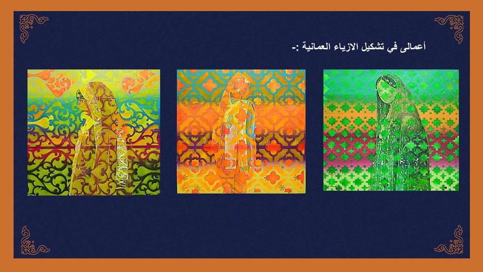 أصف أسلوبي بأنه: “إيقاع بصري تجريدي يمزج بين روح العمارة العُمانية وجمالية الحرف العربي كعنصر مُنقذ للهوية.”